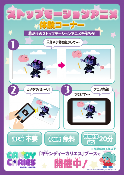 キャンディーカリエスのキャラクターを使って、ストップモーションアニメ作りを体験できます!